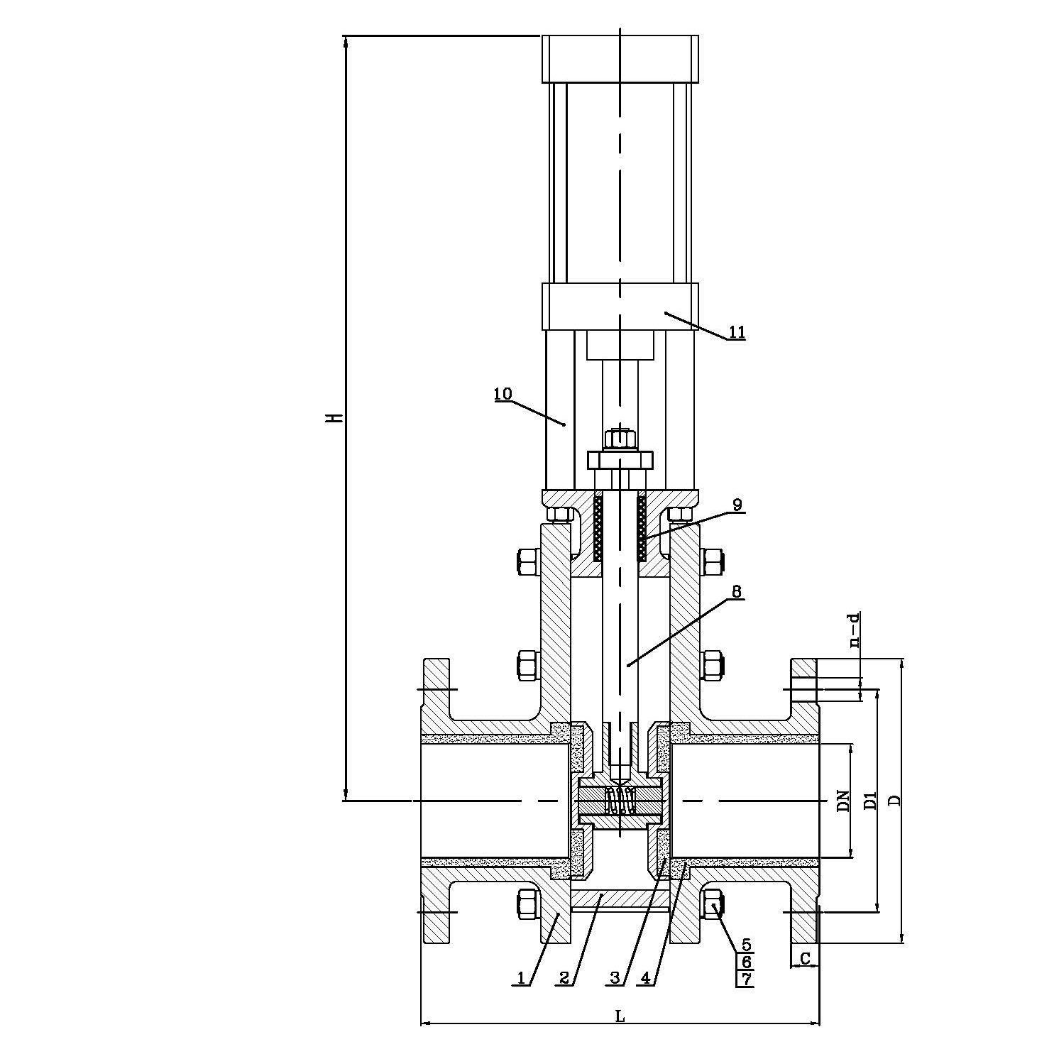 本閥適用于發電廠干灰系統、倉泵出料輸送.也可適用于礦山、 造紙、化工等個類有磨損的干粉塵、水例如(灰渣水)等介質 在管道上作啟閉之用。公稱壓力1.0MPa. 適應溫度≤200。c. 氣 源壓力0.6-0.8MPa。