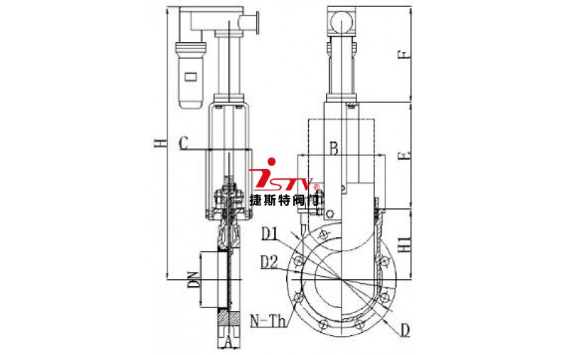 電液動陶瓷刀閘閥 外形尺寸: